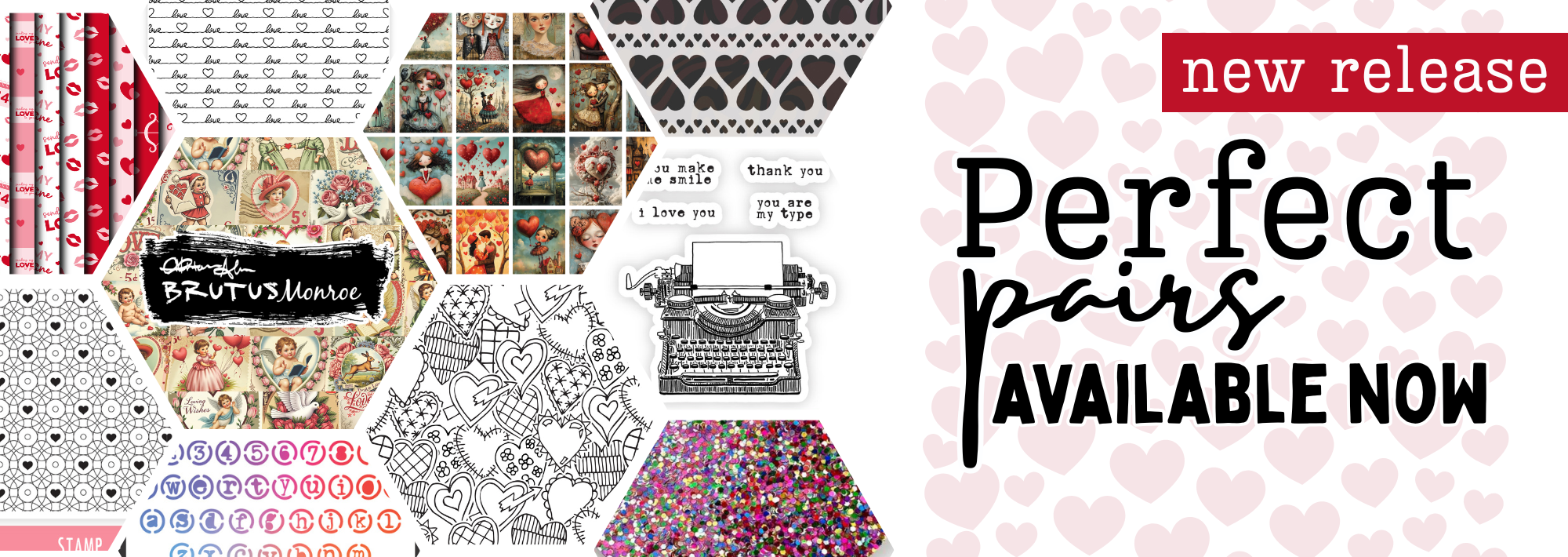 Brutus MonroePerfect Pairs | Mega Bundle includes: Handwritten Love | 6x6 Stamp Set Handwritten Love | Mixed Media Coordinating Stencil Lots of Heart | 6x6 ...