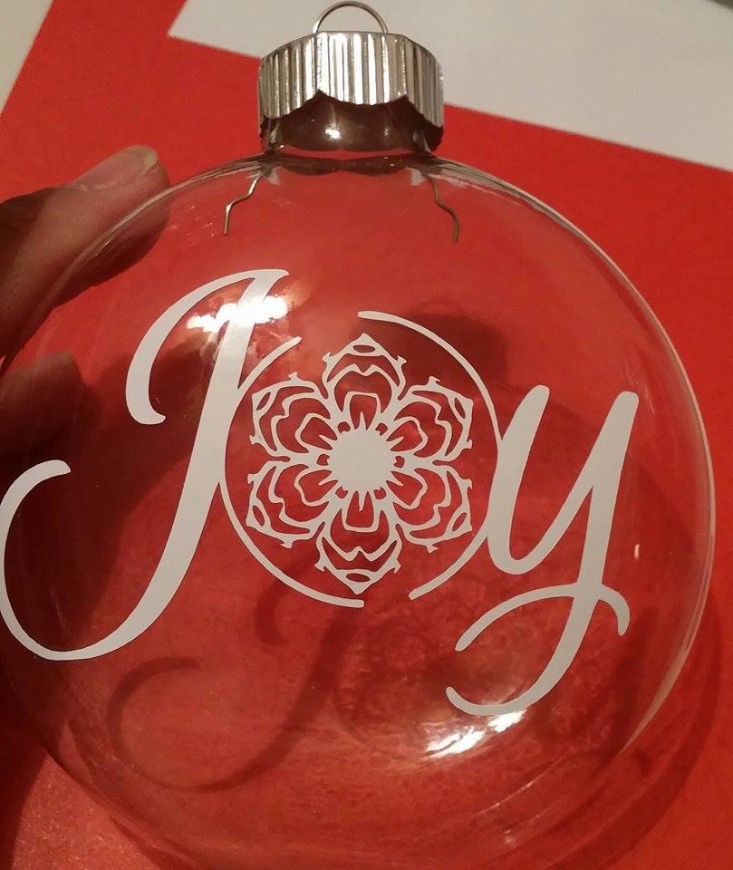 2. Weed the image and place it on a clean ornament. I used rubbing alcohol to clean the surface of mine. You should end up with something like this.