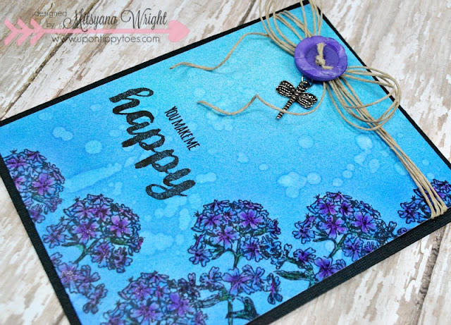 Then I stamped my sentiment "You make me happy" onto my card front using more black ink.
