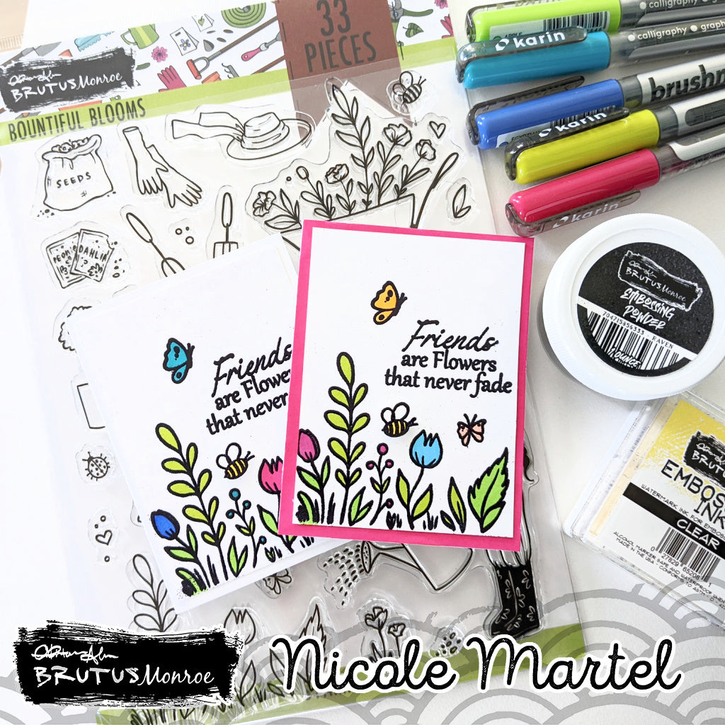 Good morning friends. Happy Friday! Today, I'm sharing two cards I created using the Bountiful Blooms stamp set (BRU7902) with Raven Embossing powder. These cards are super simple to make and oh, so colorful!