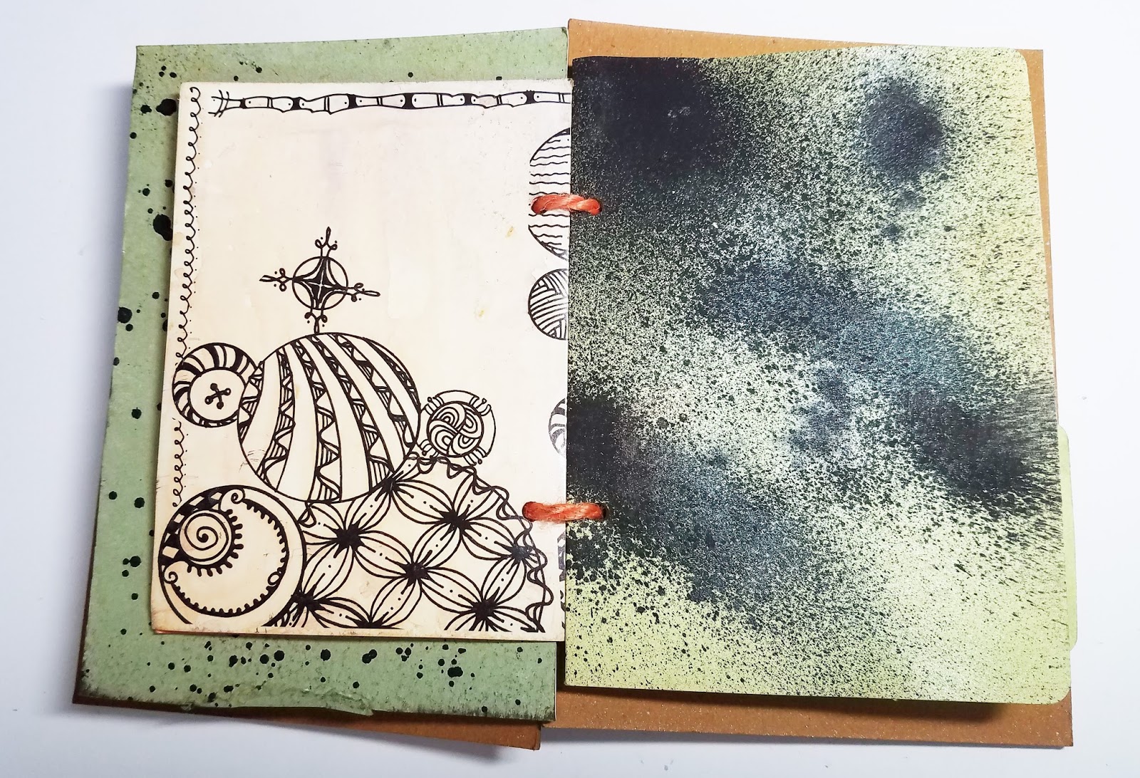 Here is a video tutorial on how I constructed the book and added in all the colors with mists on each page - the bones of the book have you. When it was done it looked like a little briefcase!