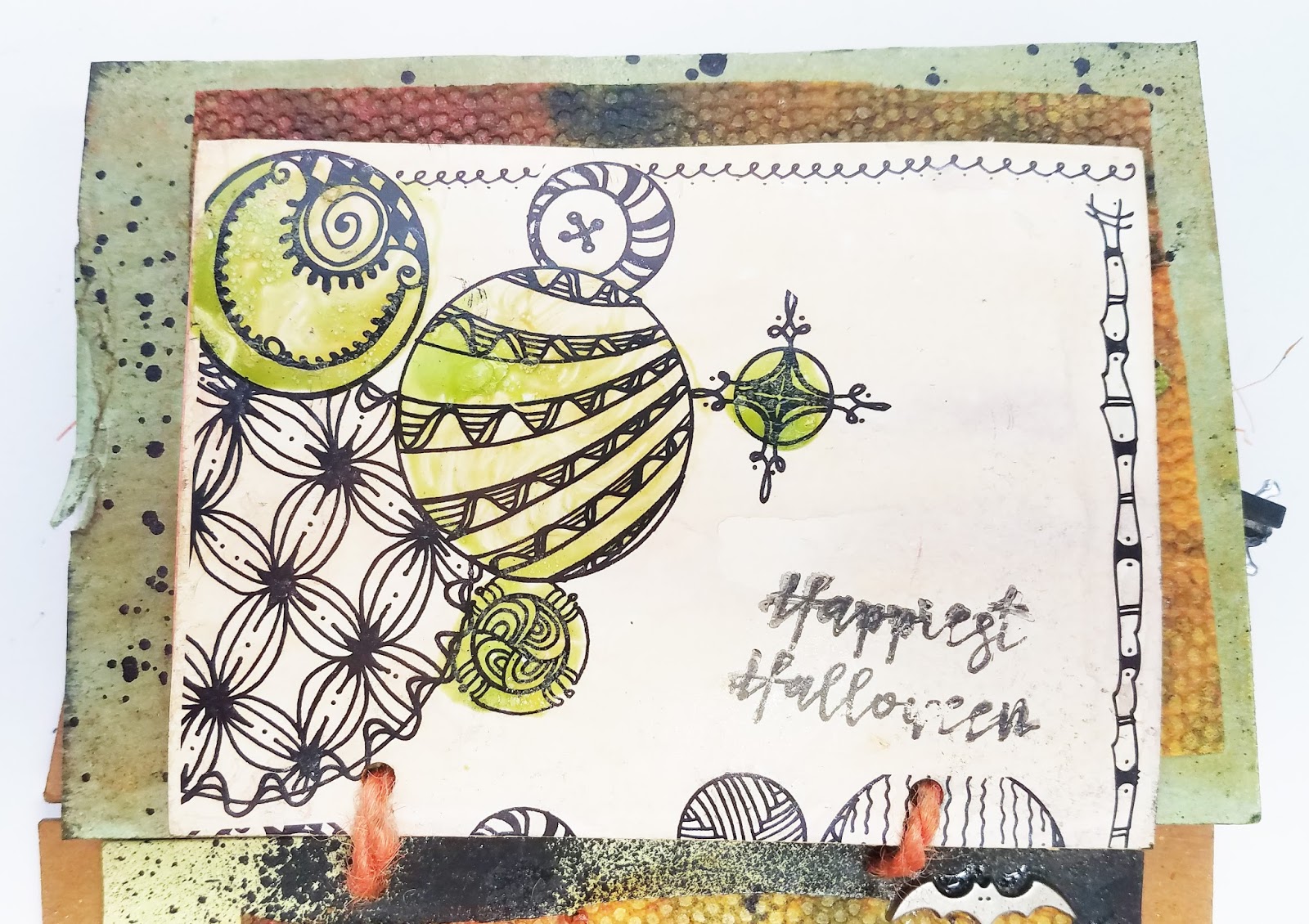 I love to make little mini books, today it is all about Halloween. it is filled with layers of papers, mists, stamps, and other fun little bits and pieces. I even left places open to write or place pictures!