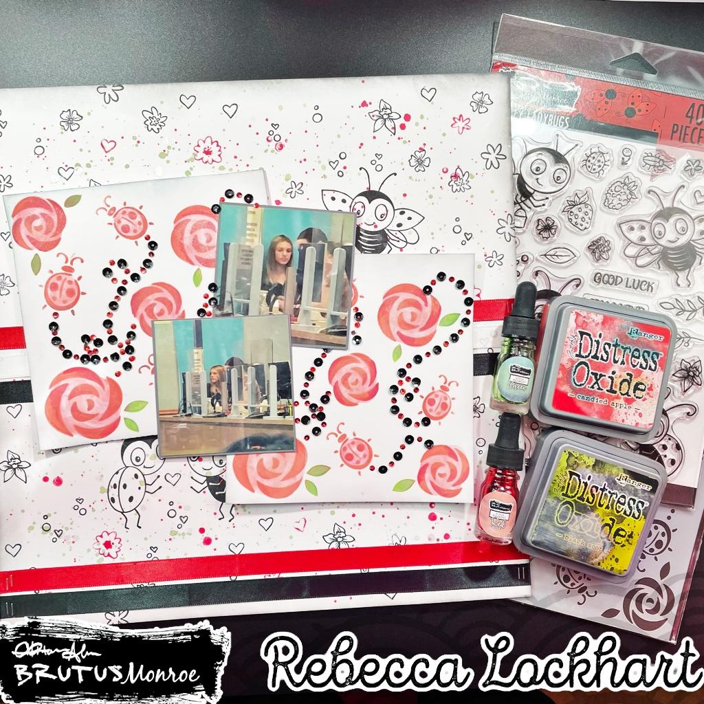 First, I took the Ladybug Roses 6x6 stencil that is a perfect complement to the stamp set and did some ink blending with distress oxides.