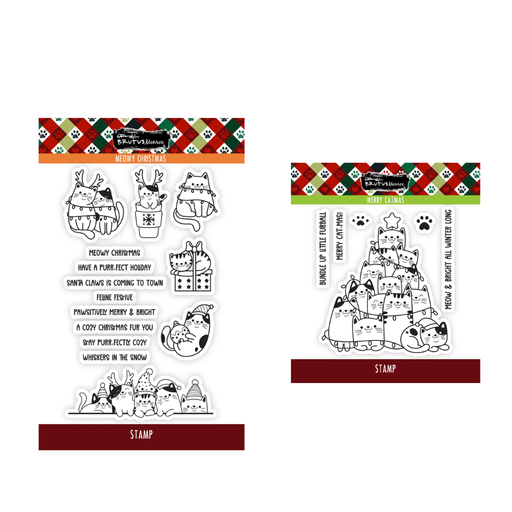 Brutus MonroeKitty Christmas Stamp Bundle includes: Meowy Christmas | 4x6 Stamp Set Merry Catmas | 4x4 Stamp Set