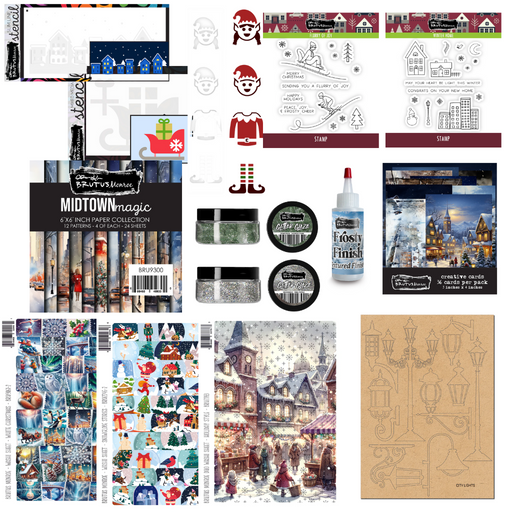 Brutus MonroeCity Sidewalks Mega Bundle includes: Flurry of Joy | 4x4 Stamp Set Winter Home | 4x4 Stamp Set Frosty Finish | Textured Finish Evergreen Evening |...