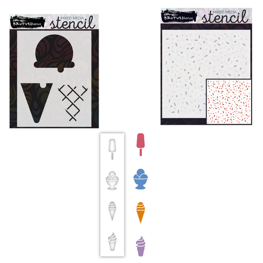 Brutus MonroeFrozen Delights | Stencil Bundle includes: Build a Cone | A2 Stencil Frozen Treats | Slide Show Stencil Sprinkles | Mixed Media Layering Stencil