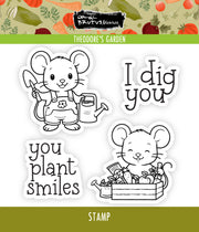 Meet Theodore and friends in this delightful 4x4 stamp set! Perfect for papercrafters who love whimsical details, this four-piece collection features Brutus Monroe's beloved little mouse gardener tending to his flourishing garden with pure joy. Each stamp captures Theodore's cheerful personality as he waters plants, picks flowers, and celebrates the simple pleasures of gardening. Ideal for cardmaking, scrapbooking, and mixed media projects, these charming designs add personality and warmth to any creative endeavor.
