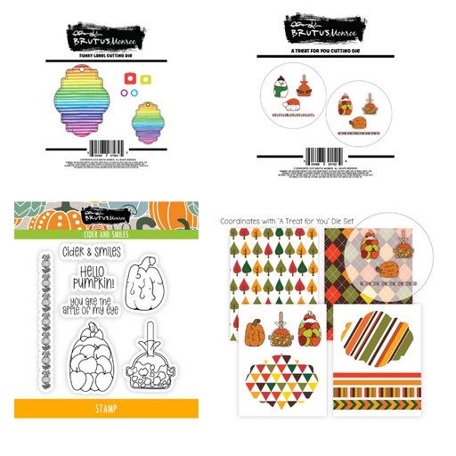 Brutus MonroeCider and Smiles | Autumn Bundle includes: Cider and Smiles | 4x4 Stamp Hello Pumpkin | Card Panels Funky Label | Cutting Dies A Treat For You | C...