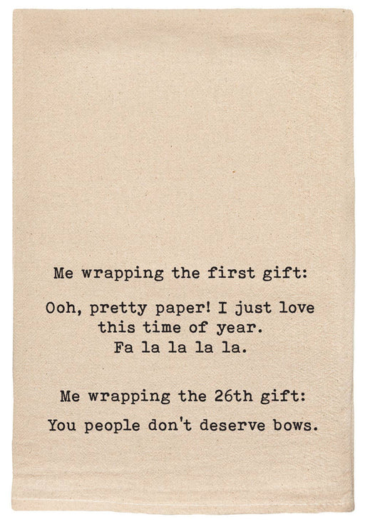 View full detailsMe wrapping the first gift: Ooh pretty paper! Tea Towel