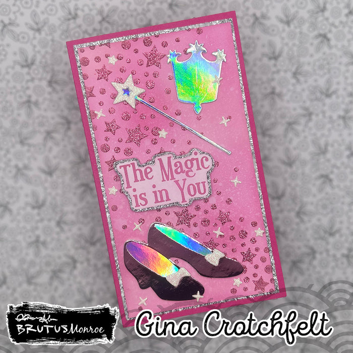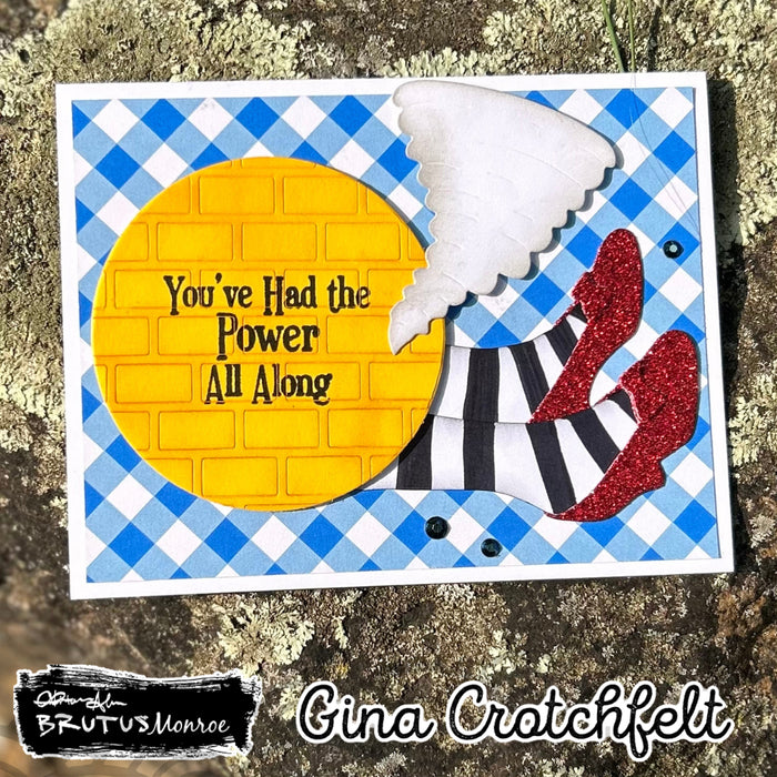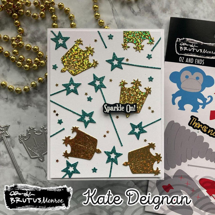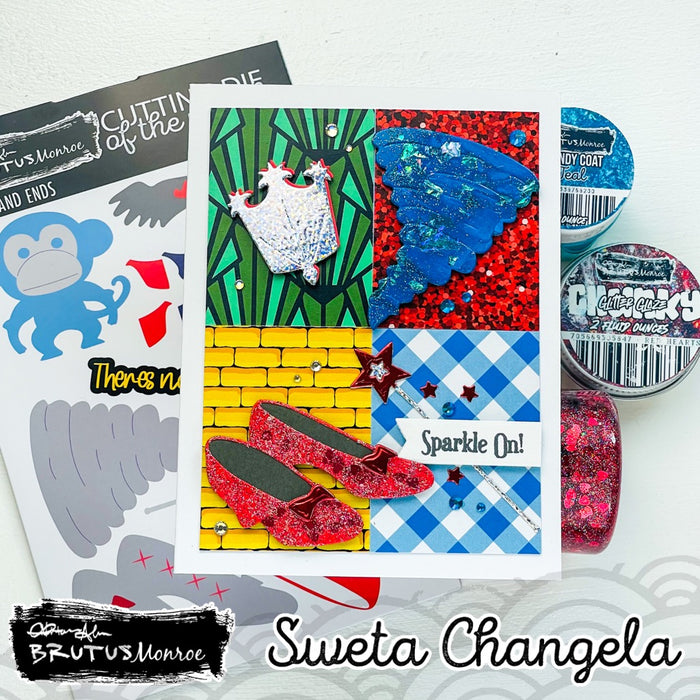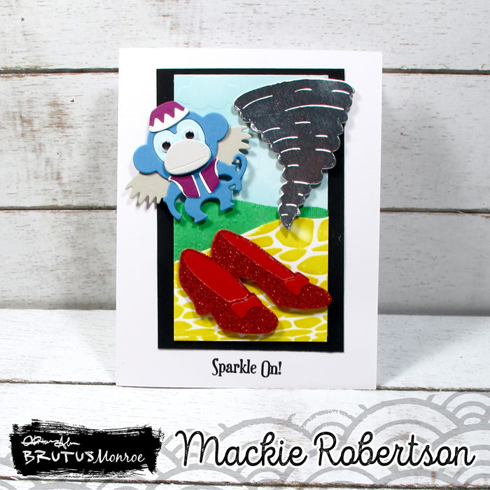 This die set includes ruby slippers, good witch crown and wand, a flying monkey and more.