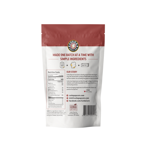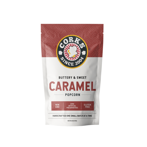 Corks PopcornCork's crunchy, sweet, buttery caramel popcorn is hand-made one small batch at a time. We use oil-popped, mushroom kernels and coat them in a caram...