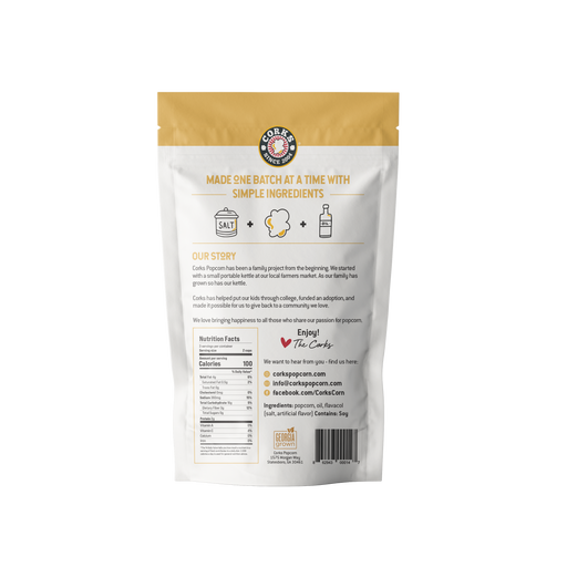 Corks PopcornSimple, yet delicious, Cork's Simply Salted Popcorn is one of the house favorites. We oil-pop mushroom kernels, one small batch at a time, and fres...