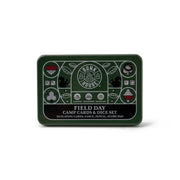 -Pocket-sized games for rainy days and adventure breaks -Reusable tin container includes: - 54 playing cards - 6 dice - Pencil - Score pad - Game instructions