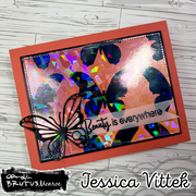 This magical foil can be applied using our Chroma Glaze in place of the usual transfer gel. Simple spread it through a stencil, let it dry, place your foil over top, run through a laminator with a carrier sheet and you'll have a beautiful foiled image using any color you choose!