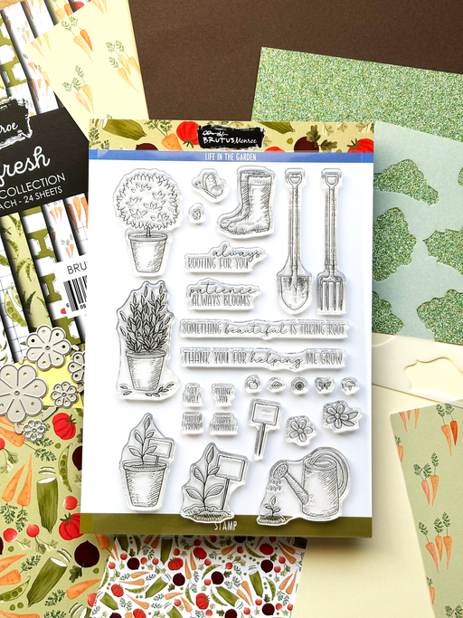 Brutus Monroe2026 February Inspiration Box - Rooted in Kindness Life in the Garden | 6x8 Stamp Set Garden Fresh | Paper Pad Flower Die Set Ornamental Tags | Mi...