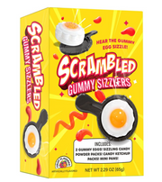 Experience the amazing sizzling candy with Scrambled Gummy Sizzlers! Just place some of the sizzling powder into the included plastic pan, add gummi egg and listen in amazement as they sizzle before your eyes! Don’t forget to squirt some of the candy “ketchup” gel. It's interactive, fun, and utterly delicious!