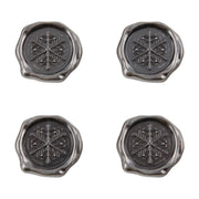 Sealed with winter bliss. Replicas of wax seals, these metal tokens are the perfect finish for your holiday invitation, card or project. Each seal is adorned with a embossed snowflake accent and is a fun way to finish off a card or invitation. Measures approximately 1 inch in diameter. Constructed of metal with antique nickel finish. 4 pieces. Imported.