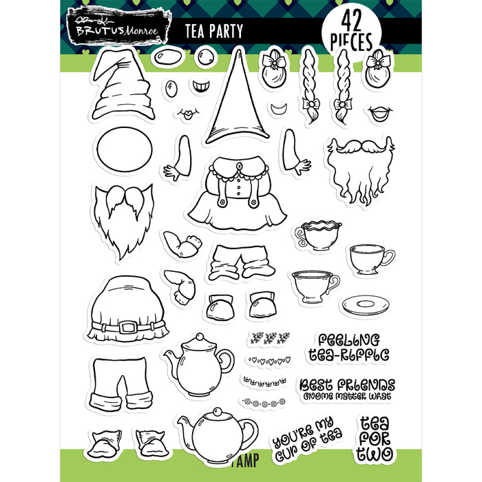 This 42 piece stamp set includes everything you need to create customized gnomes and tea sets.