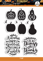 Get creative with Autumn Harvest! This papercrafting set comes with a 6"x8" stamp set or stamp and die set option, including a pumpkin base stamp to add depth to your designs. With bold sentiments and layered stamping, your autumn projects will pop! (No boring gourds here.)