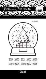 Deck the halls with the Holiday Archive Stamp! Perfect for papercrafting, this stamp features a festive snowglobe complete with snow and a tree. With dates available for years to come, it's a timeless addition to your holiday collection. (Jingle all the way!)