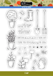 Bring your garden dreams to life with this delightful 30-piece stamp set! Perfect for papercrafters who love all things green and growing, this collection features charming gardening sentiments, detailed tool illustrations, and plant markers with coordinating quotes. Mix and match stamps to create personalized garden labels, botanical cards, and nature-inspired layouts. Whether you're documenting your gardening adventures or crafting gifts for the plant parent in your life, these versatile 6x8 stamps deliver endless creative possibilities with a sprinkle of horticultural charm.