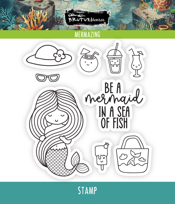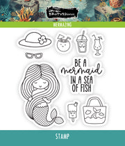 Swim into crafting fun with the Mermazing 4x4 Stamp set! This treasure chest of 9 playful stamps features an adorable mermaid, bubbly tropical drinks, and ocean-inspired sentiments. Perfect for adding a splash of underwater whimsy to your papercrafting projects! These stamps are shore to make your cards, scrapbooks, and crafts absolutely mer-velous. Dive in and let your creativity flow!