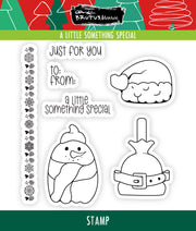 Celebrate the cozy spirit of winter with the "A Little Something Special" 4x4 stamp. Perfectly designed to coordinate with the "A Treat For You" die set, this stamp adds a playful holiday touch to your crafts. Whether you're creating festive cards or charming gift tags, it brings a sweet surprise to every project. 7 stamps included.