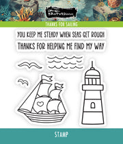 Set sail on a sea of creativity with the Thanks For Sailing 4x4 Stamp set! This playful collection features 7 nautical stamps including a charming sailboat, guiding lighthouse, soaring seagulls, rolling waves, and heartfelt sentiments. Perfect for crafting maritime-themed cards, scrapbook pages, and papercrafting projects that will make waves with your friends and family. Anchors aweigh for crafting adventures!