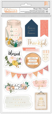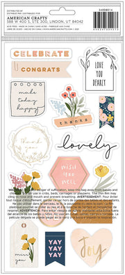 Stickers add the perfect finishing touch to your paper projects. Stickers can be a fun embellishment, a whimsical accent, or add elegant polish to scrapbook pages, greeting cards, mixed media and more. This package contains American Crafts stickers