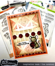 Meet Theodore's Thimble—a delightfully mischievous stamp set featuring Brutus Monroe's beloved mouse character ready to stitch up creative fun! This 4x6 collection includes 9 charming stamps and coordinating sentiments perfect for papercrafting projects. Whether you're designing greeting cards, scrapbook layouts, or mixed-media creations, Theodore brings personality and whimsy to every impression. Ideal for cardmakers and craft enthusiasts who love adding character-driven details to their work.