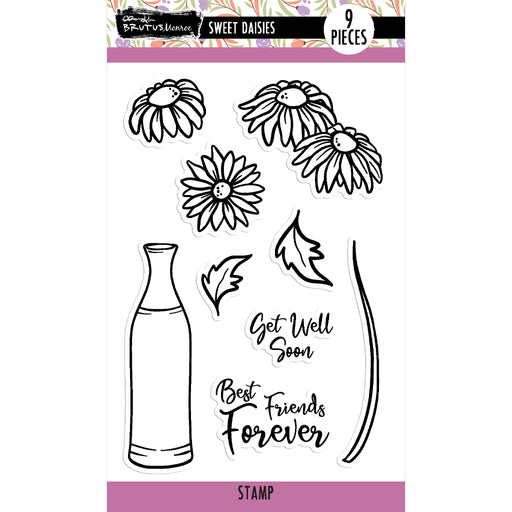 Brutus MonroeThis 9 piece stamp set includes a vase, blooms, stems, leaves and sentiments.
