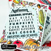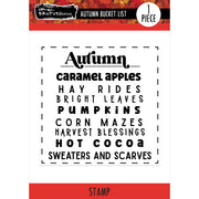 Summon the crispness of Fall with the Autumn Bucket List 4x4 stamp set! Featuring fun fonts, you stamp and use just a portion of the stamped image or the full image for a fun list of fall items to check off your list.  Go beyond your run-of-the-mill Fall projects and create something truly unique and fabulous! Get stamping and make those cozy Autumn dreams come true!