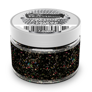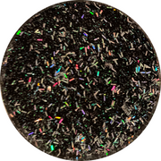 You will receive a one ounce jar of powder that will melt black with a holographic glitter.