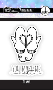 The Make Me Melt stamp set is perfect for papercrafting enthusiasts. This quirky set includes two mittens with a heart joining them, along with a playful sentiment. Share the love with this fun and versatile set!