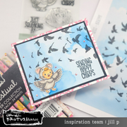Meet Theodore in his feathered finest! This delightful 4x4 stamp set features Brutus Monroe's beloved little character all dressed up as a cheerful bird, ready to soar into your papercrafting projects. Complete with four coordinating stamps and charming sentiments, Theodore's Flight lets you celebrate friendship and imagination on every card and creation. Perfect for adding whimsy to scrapbooking, cardmaking, and mixed media designs. Let Theodore help your crafty creations take flight!