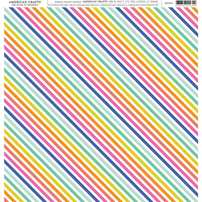 Rainbow Diagonal Lines | American Crafts Patterned Single-Sided Cardstock 12"X12" |
