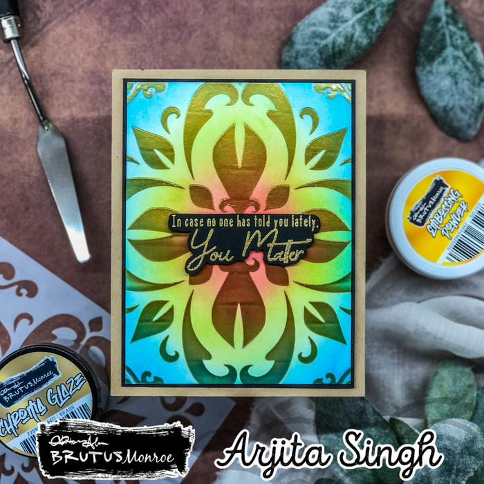 The Brutus Monroe "Chroma Glaze" collection is an incredible medium bodied gel based medium tinted to perfection. Each color works beautifully on all surfaces like our other surface products. This semi opaque medium looks beautiful on acetate and paper alike, but with the acetate it will give the look of stained glass (gorgeous right?)