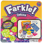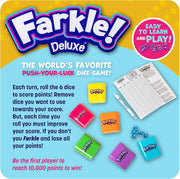 Farkle Deluxe is a great party game with 6 sets of colorful dice & cups. Roll your dice and try to score with a three of a kind, a full house, a straight and more! Will you stick with a moderate roll, or tempt fate for a shot at a more winning combination? The first player to 10,000 points wins. This set comes with six sets of dice and cups and a rolling tray.