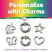 Gather your friends to create DIY friendship bracelets by weaving bright, stretchy elastic cord around cute silver charms! When you are finished creating your accessories wear and share Comes with everything you need to create 6 charm bracelets for kids just add creativity and imagination! Includes 6 strands of elastic cord, 6 silver-tone charms, 6 pony beads, a needle threader and illustrated instructions Great group activity! Friends Forever Bracelets is an easy jewelry making kit that is perfect for your next party, sleepover or play date Personalize your bracelets by adding charms (unicorn, butterfly, star, heart and 2 BFF charms) and creating unique braids with included colored elastic cord! This is a great indoor activity for completing at home independently. Making bracelets is a screen-free activity that boosts fine motor skills and encourages calm and quiet play