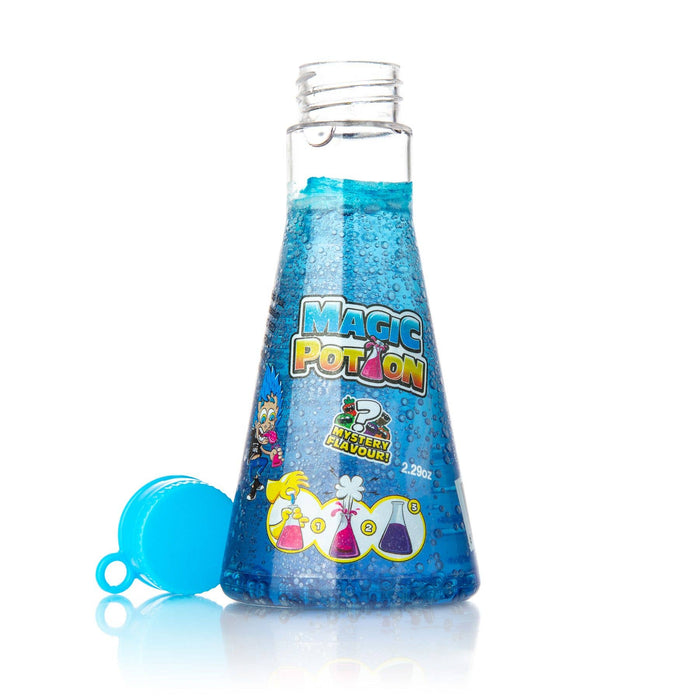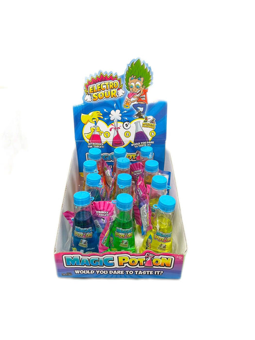 Magic Potion 2.29 Fl oz. The magic potion is an incredibly exciting liquid candy! Introduce the tablet inside the bottle, wait 5 minutes and see which new color will appear. At first, you won’t know which color you’ll get, nor its flavor. Watch the magic happen while you watch the color change happen.