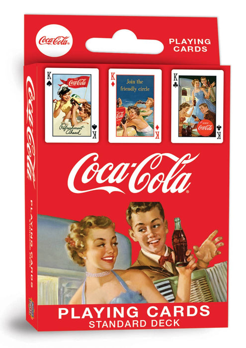 These Coca-Cola vintage playing cards are the perfect deck for any Coke fan! Each standard deck contains 52 high quality cardstock cards and 2 jokers. Card-back designs feature custom Coke art. All face cards and jokers have retro Coke art. Officially licensed and approved Coca-Cola playing cards.