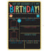 "Hurray! It's My Birthday!" chalk sign measuring 11 x 16 inches. There are spaces to record your child's favorite color, food, song, and more. The chalk-style base features pops of color that make it perfect for recording and sharing memories. Made from 5mm thick MDF.