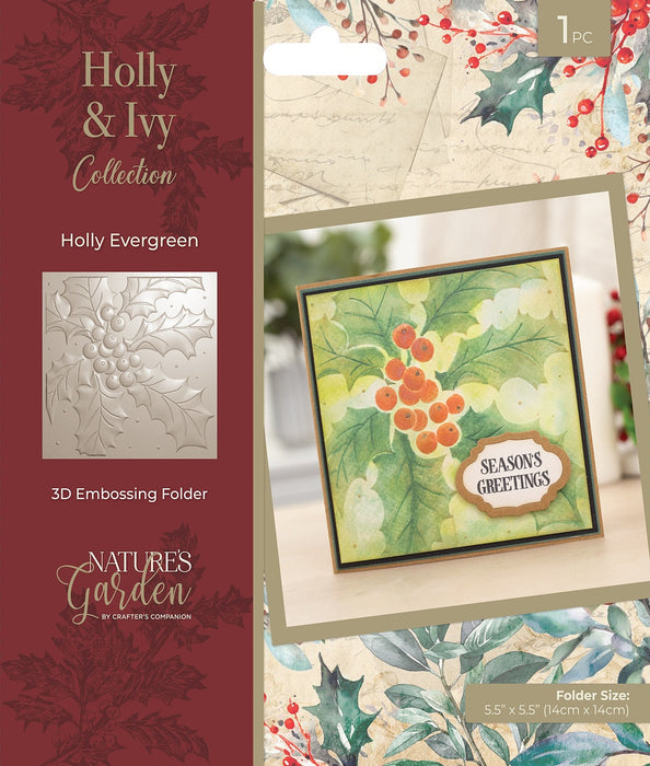 Holly Evergreen, Holly & Ivy | Nature's Garden | 3D Embossing Folder 5.5"X5.5"
