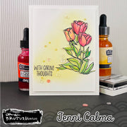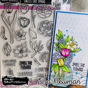 This 27 piece stamp set offers an abundance of blossoms to create beautiful bouquets and arrangements for your projects. Illustrated by Emily Goff.