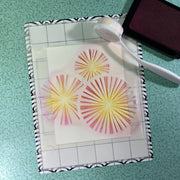 The Stick and Stamp Blending Buddy was created to protect your stick and stamp mat while you are blending your beautiful colors of ink onto your A2 sized paper. This laser cut template will accommodate your A2 sheet of paper perfectly inside of the cut area and allow for beautiful blending everytime. We have also added "stencil tabs" to the design of this product so you are able to use it with your favorite square stencils as well.