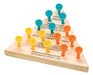 This deceptively difficult brain teaser was redesigned for travel-friendly fun and is one of the best-selling games! This Classic Wooden Peg Game includes a 4.75-inch wooden triangle base and 15 colored pegs. Pegs are blue, yellow, and orange in color. 5 of each color are included. All the rules are printed in black ink onto the board’s face, so it’s easy to learn and play on the go without toting around a paper instruction booklet.